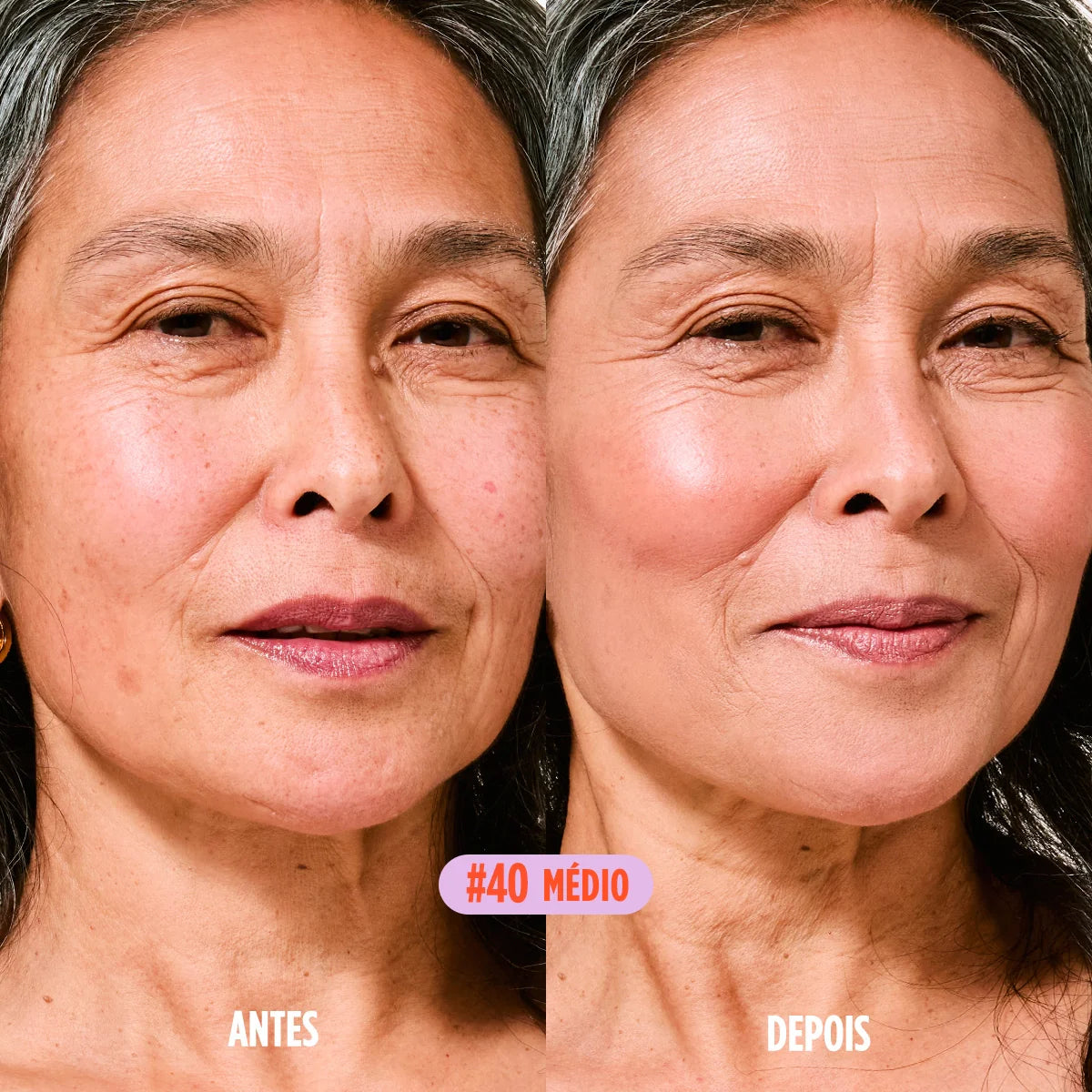 #40 – Tom médio bronze de fundo neutro, indicado para peles médias levemente douradas ou bege, fototipo IV.
