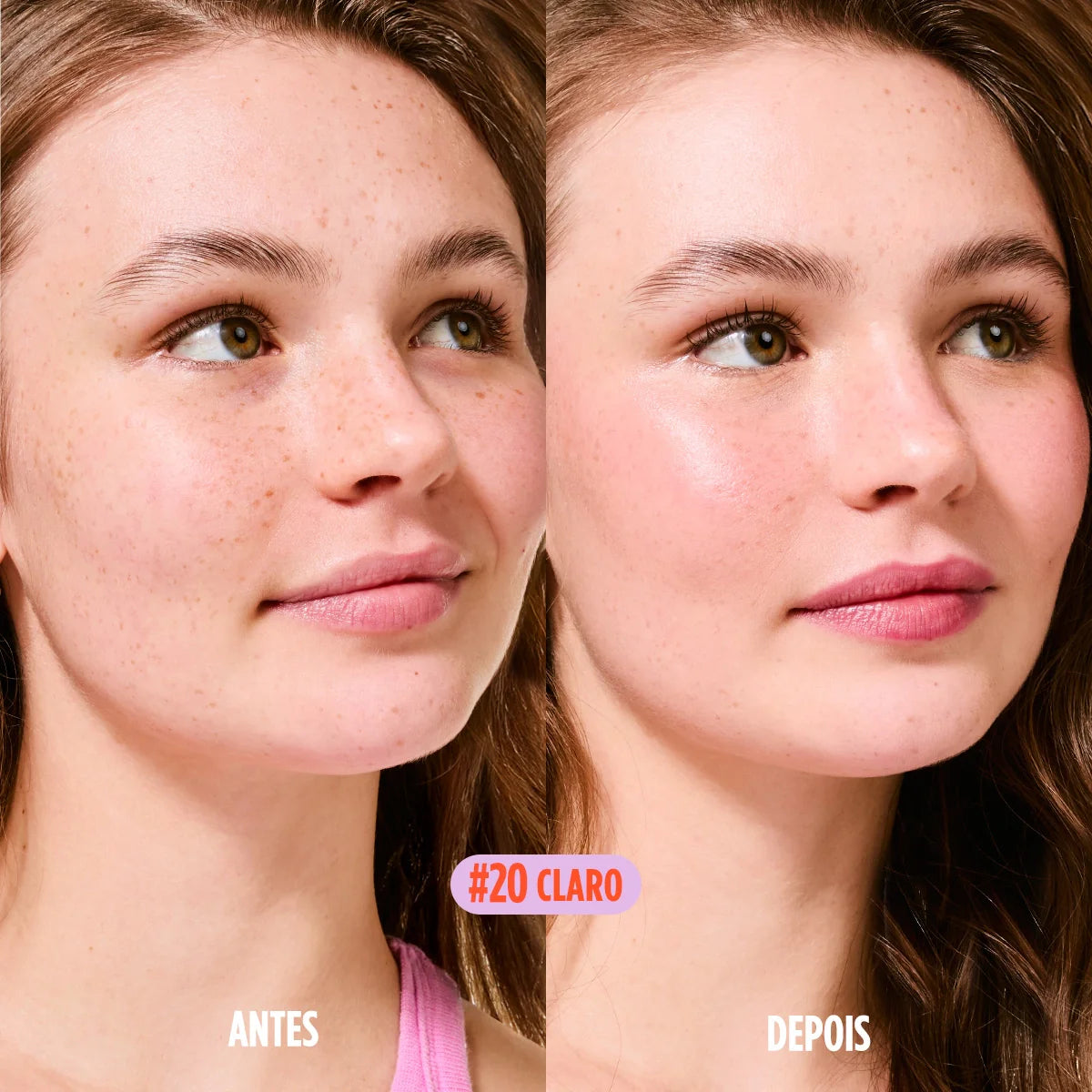 #20 – Tom claro-médio de fundo frio, indicado para peles claras com subtom frio, fototipo II.